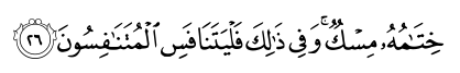 26. laissant un arrière-goût de musc. Que ceux qui la convoitent entrent en compétition [pour l’acquérir]